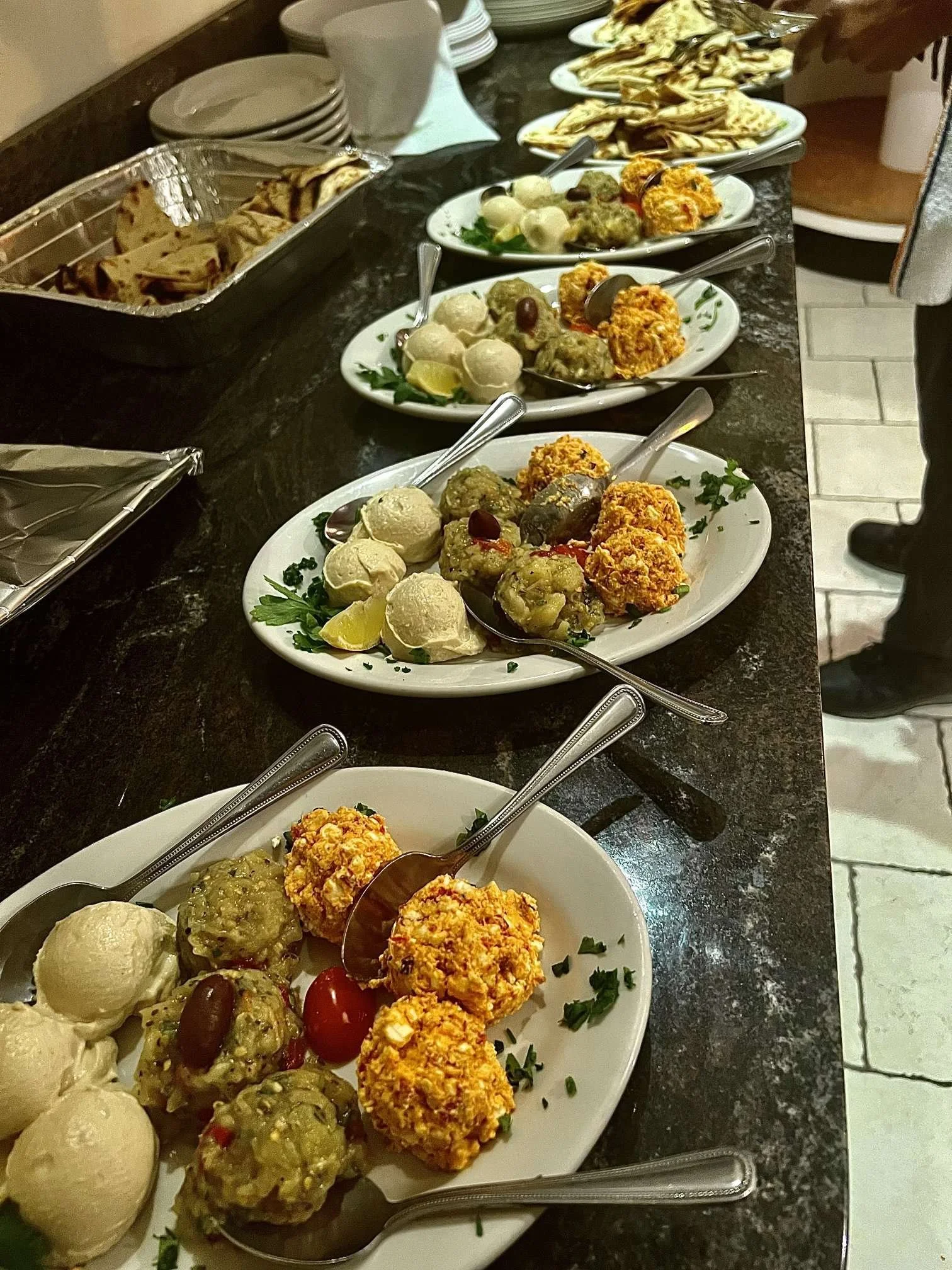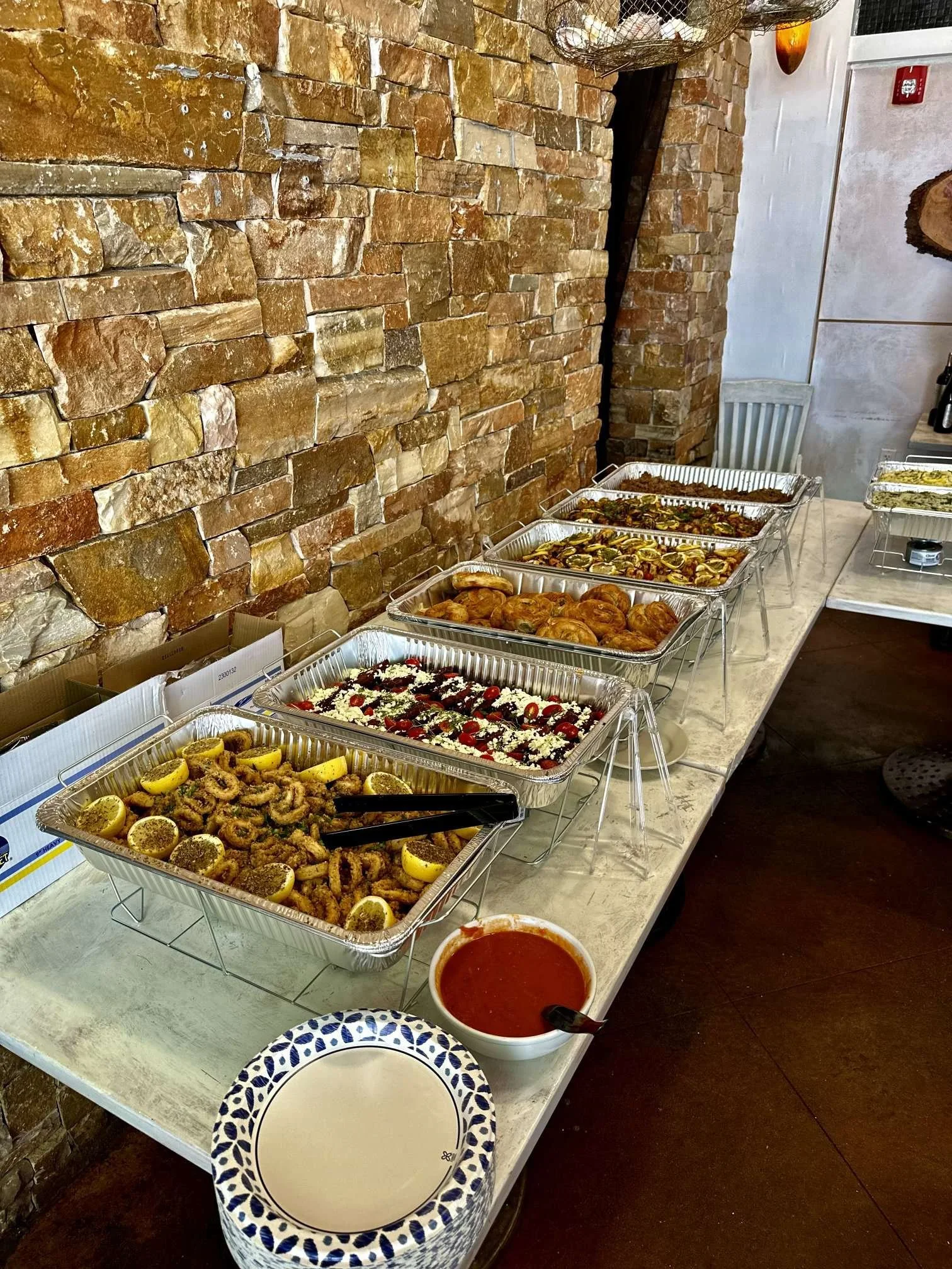 [GF] Spreads: Tzatziki, Spicy feta, eggplant & hummus, served with Pita, Half Tray: 65.00-Full tray: 115.00